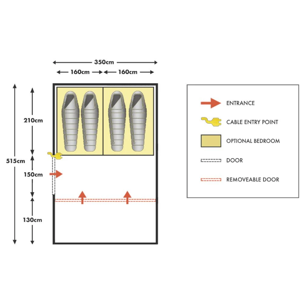- Double inner tent with Khyam’s ‘Sleep Easy’ feature and zip division for versatility.